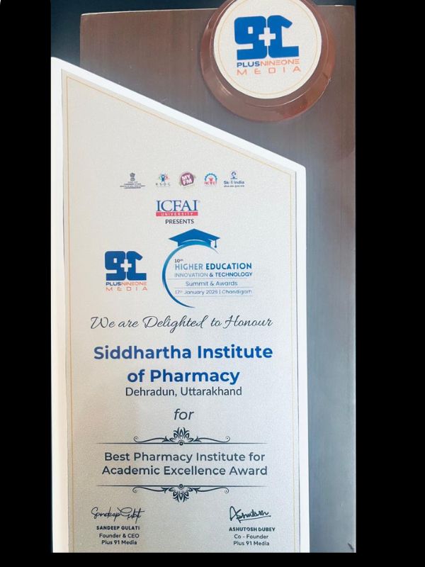 Siddhartha Group of Institutions envisage to become the leader in its category with the state of art facilities to provide education, training, research, consultancy and outreach services at par with national and international institutes of repute in the field of Pharmacy, Law and Nursing.