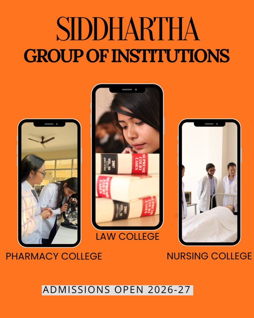 Siddhartha Group of Institutions envisage to become the leader in its category with the state of art facilities to provide education, training, research, consultancy and outreach services at par with national and international institutes of repute in the field of Pharmacy, Law and Nursing.